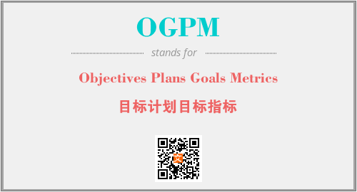 上述内容是“Objectives Plans Goals Metrics”作为“OGPM”的缩写,解释为“目标计划目标指标”时的信息,以及英文缩略词OGPM所代表的英文单词,其对应的中文拼音、详细解释以及在英文中的流行度和相关分类、应用领域及应用示例等。
