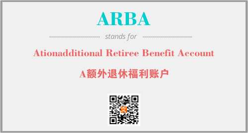 上述内容是“Ationadditional Retiree Benefit Account”作为“ARBA”的缩写,解释为“A额外退休福利账户”时的信息,以及英文缩略词ARBA所代表的英文单词,其对应的中文拼音、详细解释以及在英文中的流行度和相关分类、应用领域及应用示例等。