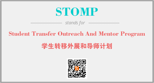 以上为Student Transfer Outreach And Mentor Program英文缩略词STOMP的中文解释,以及该英文缩写在英语的流行度、分类和应用领域方面的信息。