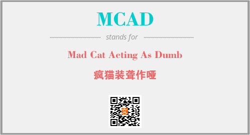 英文缩略词“MCAD”经常作为“Mad Cat Acting As Dumb”的英文缩写来使用,中文表示:“疯猫装聋作哑”。本文将详细介绍英文缩写词MCAD所代表英文单词,其对应的中文拼音、详细解释以及在英语中的流行度。此外,还有关于缩略词MCAD的分类、应用领域及相关应用示例等。