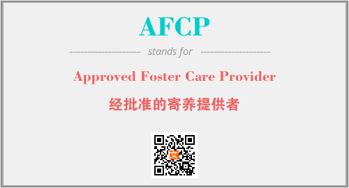 上述内容是“Approved Foster Care Provider”作为“AFCP”的缩写,解释为“经批准的寄养提供者”时的信息,以及英文缩略词AFCP所代表的英文单词,其对应的中文拼音、详细解释以及在英文中的流行度和相关分类、应用领域及应用示例等。
