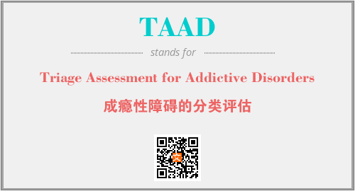 上述内容是“Triage Assessment for Addictive Disorders”作为“TAAD”的缩写,解释为“成瘾性障碍的分类评估”时的信息,以及英文缩略词TAAD所代表的英文单词,其对应的中文拼音、详细解释以及在英文中的流行度和相关分类、应用领域及应用示例等。