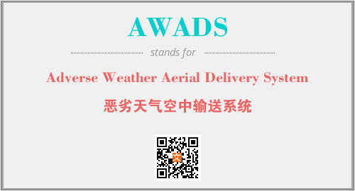 上述内容是“Adverse Weather Aerial Delivery System”作为“AWADS”的缩写,解释为“恶劣天气空中输送系统”时的信息,以及英文缩略词AWADS所代表的英文单词,其对应的中文拼音、详细解释以及在英文中的流行度和相关分类、应用领域及应用示例等。