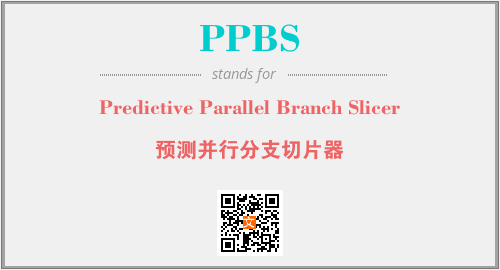 英文缩略词“PPBS”经常作为“Predictive Parallel Branch Slicer”的英文缩写来使用,中文表示:“预测并行分支切片器”。本文将详细介绍英文缩写词PPBS所代表英文单词,其对应的中文拼音、详细解释以及在英语中的流行度。此外,还有关于缩略词PPBS的分类、应用领域及相关应用示例等。
