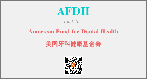 英文缩略词“AFDH”经常作为“American Fund for Dental Health”的英文缩写来使用,中文表示:“美国牙科健康基金会”。本文将详细介绍英文缩写词AFDH所代表英文单词,其对应的中文拼音、详细解释以及在英语中的流行度。此外,还有关于缩略词AFDH的分类、应用领域及相关应用示例等。