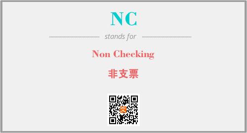 英文缩略词“NC”经常作为“Non Checking”的英文缩写来使用,中文表示:“非支票”。本文将详细介绍英文缩写词NC所代表英文单词,其对应的中文拼音、详细解释以及在英语中的流行度。此外,还有关于缩略词NC的分类、应用领域及相关应用示例等。