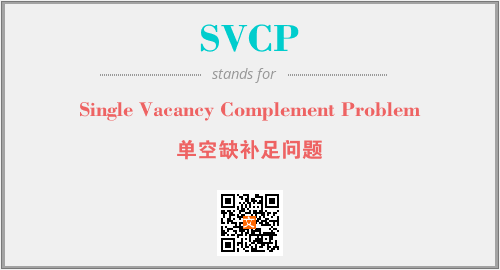 上述内容是“Single Vacancy Complement Problem”作为“SVCP”的缩写,解释为“单空缺补足问题”时的信息,以及英文缩略词SVCP所代表的英文单词,其对应的中文拼音、详细解释以及在英文中的流行度和相关分类、应用领域及应用示例等。