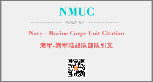 上述内容是“Navy - Marine Corps Unit Citation”作为“NMUC”的缩写,解释为“海军-海军陆战队部队引文”时的信息,以及英文缩略词NMUC所代表的英文单词,其对应的中文拼音、详细解释以及在英文中的流行度和相关分类、应用领域及应用示例等。