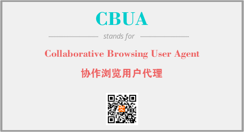 英文缩略词“CBUA”经常作为“Collaborative Browsing User Agent”的英文缩写来使用,中文表示:“协作浏览用户代理”。本文将详细介绍英文缩写词CBUA所代表英文单词,其对应的中文拼音、详细解释以及在英语中的流行度。此外,还有关于缩略词CBUA的分类、应用领域及相关应用示例等。