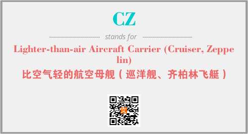上述内容是“Lighter-than-air Aircraft Carrier (Cruiser, Zeppelin)”作为“CZ”的缩写,解释为“比空气轻的航空母舰(巡洋舰、齐柏林飞艇)”时的信息,以及英文缩略词CZ所代表的英文单词,其对应的中文拼音、详细解释以及在英文中的流行度和相关分类、应用领域及应用示例等。