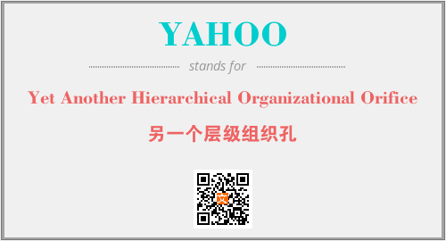 以上为Yet Another Hierarchical Organizational Orifice英文缩略词YAHOO的中文解释,以及该英文缩写在英语的流行度、分类和应用领域方面的信息。
