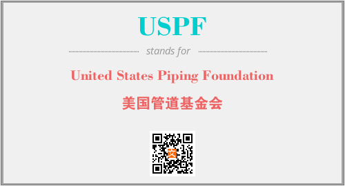 上述内容是“United States Piping Foundation”作为“USPF”的缩写,解释为“美国管道基金会”时的信息,以及英文缩略词USPF所代表的英文单词,其对应的中文拼音、详细解释以及在英文中的流行度和相关分类、应用领域及应用示例等。