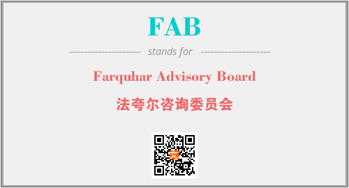 上述内容是“Farquhar Advisory Board”作为“FAB”的缩写,解释为“法夸尔咨询委员会”时的信息,以及英文缩略词FAB所代表的英文单词,其对应的中文拼音、详细解释以及在英文中的流行度和相关分类、应用领域及应用示例等。