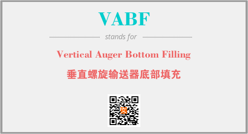 上述内容是“Vertical Auger Bottom Filling”作为“VABF”的缩写,解释为“垂直螺旋输送器底部填充”时的信息,以及英文缩略词VABF所代表的英文单词,其对应的中文拼音、详细解释以及在英文中的流行度和相关分类、应用领域及应用示例等。