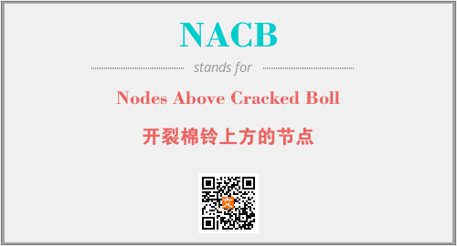 英文缩略词“NACB”经常作为“Nodes Above Cracked Boll”的英文缩写来使用,中文表示:“开裂棉铃上方的节点”。本文将详细介绍英文缩写词NACB所代表英文单词,其对应的中文拼音、详细解释以及在英语中的流行度。此外,还有关于缩略词NACB的分类、应用领域及相关应用示例等。