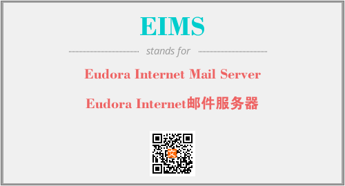 上述内容是“Eudora Internet Mail Server”作为“EIMS”的缩写,解释为“Eudora Internet邮件服务器”时的信息,以及英文缩略词EIMS所代表的英文单词,其对应的中文拼音、详细解释以及在英文中的流行度和相关分类、应用领域及应用示例等。