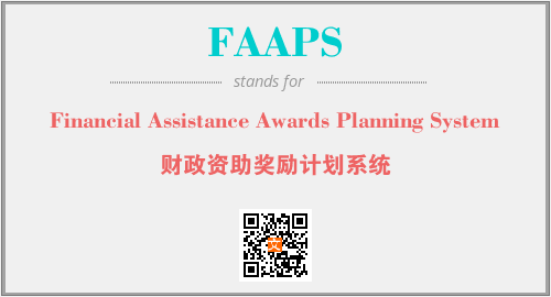上述内容是“Financial Assistance Awards Planning System”作为“FAAPS”的缩写,解释为“财政资助奖励计划系统”时的信息,以及英文缩略词FAAPS所代表的英文单词,其对应的中文拼音、详细解释以及在英文中的流行度和相关分类、应用领域及应用示例等。