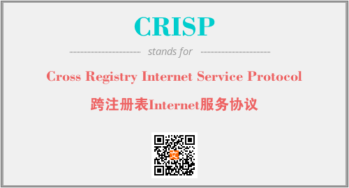 上述内容是“Cross Registry Internet Service Protocol”作为“CRISP”的缩写,解释为“跨注册表Internet服务协议”时的信息,以及英文缩略词CRISP所代表的英文单词,其对应的中文拼音、详细解释以及在英文中的流行度和相关分类、应用领域及应用示例等。