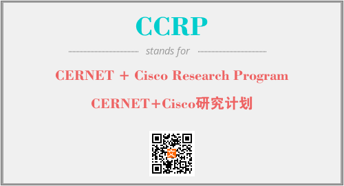 上述内容是“CERNET + Cisco Research Program”作为“CCRP”的缩写,解释为“CERNET+Cisco研究计划”时的信息,以及英文缩略词CCRP所代表的英文单词,其对应的中文拼音、详细解释以及在英文中的流行度和相关分类、应用领域及应用示例等。