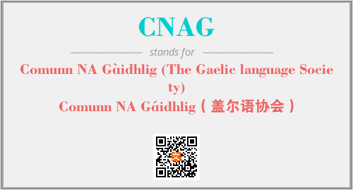 英文缩略词“CNAG”经常作为“Comunn NA Gàidhlig (The Gaelic language Society)”的英文缩写来使用,中文表示:“Comunn NA Gáidhlig(盖尔语协会)”。本文将详细介绍英文缩写词CNAG所代表英文单词,其对应的中文拼音、详细解释以及在英语中的流行度。此外,还有关于缩略词CNAG的分类、应用领域及相关应用示例等。