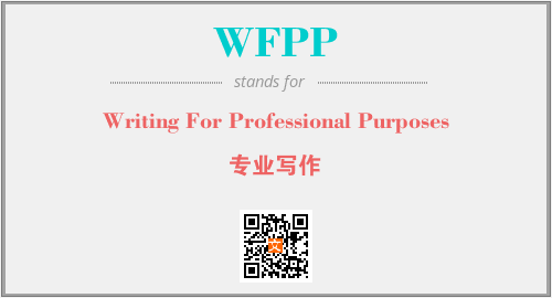 上述内容是“Writing For Professional Purposes”作为“WFPP”的缩写,解释为“专业写作”时的信息,以及英文缩略词WFPP所代表的英文单词,其对应的中文拼音、详细解释以及在英文中的流行度和相关分类、应用领域及应用示例等。