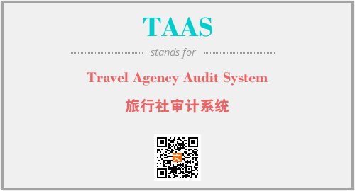 英文缩略词“TAAS”经常作为“Travel Agency Audit System”的英文缩写来使用,中文表示:“旅行社审计系统”。本文将详细介绍英文缩写词TAAS所代表英文单词,其对应的中文拼音、详细解释以及在英语中的流行度。此外,还有关于缩略词TAAS的分类、应用领域及相关应用示例等。