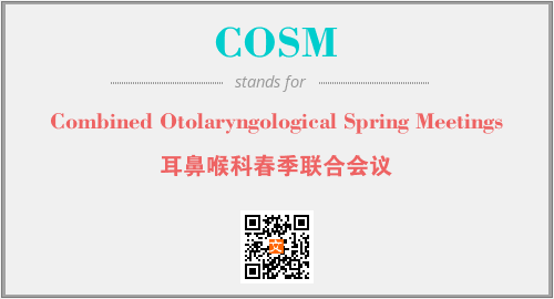 英文缩略词“COSM”经常作为“Combined Otolaryngological Spring Meetings”的英文缩写来使用,中文表示:“耳鼻喉科春季联合会议”。本文将详细介绍英文缩写词COSM所代表英文单词,其对应的中文拼音、详细解释以及在英语中的流行度。此外,还有关于缩略词COSM的分类、应用领域及相关应用示例等。