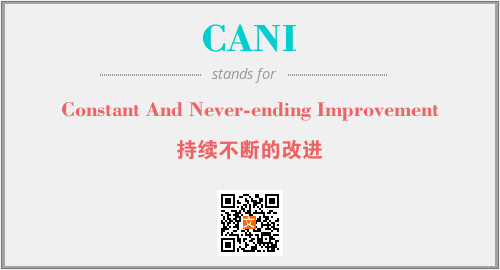 上述内容是“Constant And Never-ending Improvement”作为“CANI”的缩写,解释为“持续不断的改进”时的信息,以及英文缩略词CANI所代表的英文单词,其对应的中文拼音、详细解释以及在英文中的流行度和相关分类、应用领域及应用示例等。
