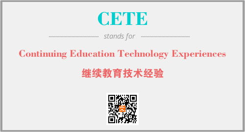以上为Continuing Education Technology Experiences英文缩略词CETE的中文解释,以及该英文缩写在英语的流行度、分类和应用领域方面的信息。