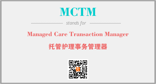 上述内容是“Managed Care Transaction Manager”作为“MCTM”的缩写,解释为“托管护理事务管理器”时的信息,以及英文缩略词MCTM所代表的英文单词,其对应的中文拼音、详细解释以及在英文中的流行度和相关分类、应用领域及应用示例等。
