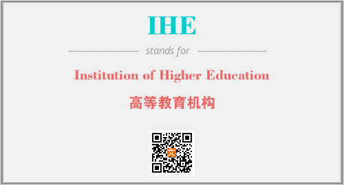 英文缩略词“IHE”经常作为“Institution of Higher Education”的英文缩写来使用,中文表示:“高等教育机构”。本文将详细介绍英文缩写词IHE所代表英文单词,其对应的中文拼音、详细解释以及在英语中的流行度。此外,还有关于缩略词IHE的分类、应用领域及相关应用示例等。