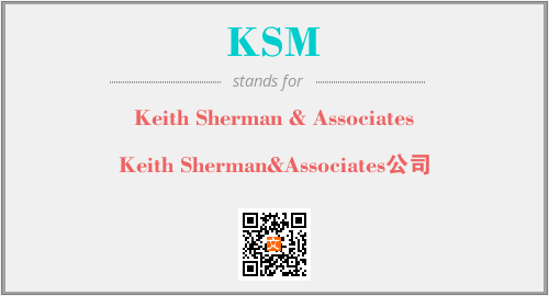 上述内容是“Keith Sherman & Associates”作为“KSM”的缩写,解释为“Keith Sherman&Associates公司”时的信息,以及英文缩略词KSM所代表的英文单词,其对应的中文拼音、详细解释以及在英文中的流行度和相关分类、应用领域及应用示例等。