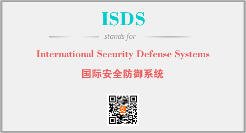 上述内容是“International Security Defense Systems”作为“ISDS”的缩写,解释为“国际安全防御系统”时的信息,以及英文缩略词ISDS所代表的英文单词,其对应的中文拼音、详细解释以及在英文中的流行度和相关分类、应用领域及应用示例等。