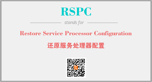 英文缩略词“RSPC”经常作为“Restore Service Processor Configuration”的英文缩写来使用,中文表示:“还原服务处理器配置”。本文将详细介绍英文缩写词RSPC所代表英文单词,其对应的中文拼音、详细解释以及在英语中的流行度。此外,还有关于缩略词RSPC的分类、应用领域及相关应用示例等。