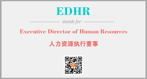 上述内容是“Executive Director of Human Resources”作为“EDHR”的缩写,解释为“人力资源执行董事”时的信息,以及英文缩略词EDHR所代表的英文单词,其对应的中文拼音、详细解释以及在英文中的流行度和相关分类、应用领域及应用示例等。