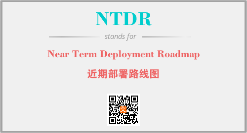 上述内容是“Near Term Deployment Roadmap”作为“NTDR”的缩写,解释为“近期部署路线图”时的信息,以及英文缩略词NTDR所代表的英文单词,其对应的中文拼音、详细解释以及在英文中的流行度和相关分类、应用领域及应用示例等。
