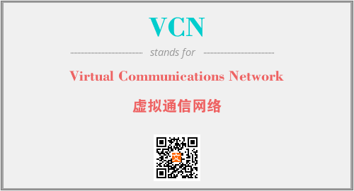 英文缩略词“VCN”经常作为“Virtual Communications Network”的英文缩写来使用,中文表示:“虚拟通信网络”。本文将详细介绍英文缩写词VCN所代表英文单词,其对应的中文拼音、详细解释以及在英语中的流行度。此外,还有关于缩略词VCN的分类、应用领域及相关应用示例等。
