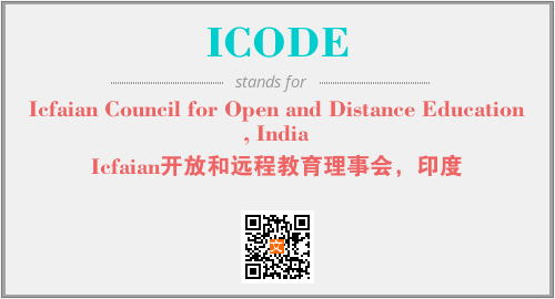 上述内容是“Icfaian Council for Open and Distance Education, India”作为“ICODE”的缩写,解释为“Icfaian开放和远程教育理事会,印度”时的信息,以及英文缩略词ICODE所代表的英文单词,其对应的中文拼音、详细解释以及在英文中的流行度和相关分类、应用领域及应用示例等。