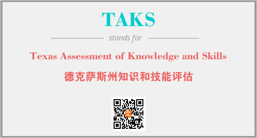 上述内容是“Texas Assessment of Knowledge and Skills”作为“TAKS”的缩写,解释为“德克萨斯州知识和技能评估”时的信息,以及英文缩略词TAKS所代表的英文单词,其对应的中文拼音、详细解释以及在英文中的流行度和相关分类、应用领域及应用示例等。