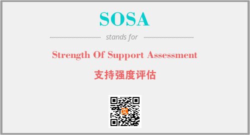 上述内容是“Strength Of Support Assessment”作为“SOSA”的缩写,解释为“支持强度评估”时的信息,以及英文缩略词SOSA所代表的英文单词,其对应的中文拼音、详细解释以及在英文中的流行度和相关分类、应用领域及应用示例等。
