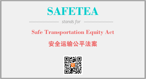 英文缩略词“SAFETEA”经常作为“Safe Transportation Equity Act”的英文缩写来使用,中文表示:“安全运输公平法案”。本文将详细介绍英文缩写词SAFETEA所代表英文单词,其对应的中文拼音、详细解释以及在英语中的流行度。此外,还有关于缩略词SAFETEA的分类、应用领域及相关应用示例等。