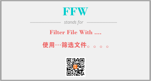英文缩略词“FFW”经常作为“Filter File With ....”的英文缩写来使用,中文表示:“使用…筛选文件。。。。”。本文将详细介绍英文缩写词FFW所代表英文单词,其对应的中文拼音、详细解释以及在英语中的流行度。此外,还有关于缩略词FFW的分类、应用领域及相关应用示例等。