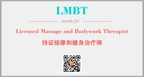 以上为Licensed Massage and Bodywork Therapist英文缩略词LMBT的中文解释,以及该英文缩写在英语的流行度、分类和应用领域方面的信息。