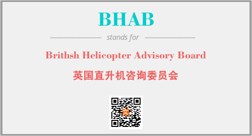 上述内容是“Brithsh Helicopter Advisory Board”作为“BHAB”的缩写,解释为“英国直升机咨询委员会”时的信息,以及英文缩略词BHAB所代表的英文单词,其对应的中文拼音、详细解释以及在英文中的流行度和相关分类、应用领域及应用示例等。