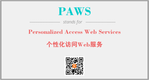 上述内容是“Personalized Access Web Services”作为“PAWS”的缩写,解释为“个性化访问Web服务”时的信息,以及英文缩略词PAWS所代表的英文单词,其对应的中文拼音、详细解释以及在英文中的流行度和相关分类、应用领域及应用示例等。