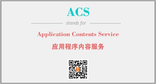 英文缩略词“ACS”经常作为“Application Contents Service”的英文缩写来使用,中文表示:“应用程序内容服务”。本文将详细介绍英文缩写词ACS所代表英文单词,其对应的中文拼音、详细解释以及在英语中的流行度。此外,还有关于缩略词ACS的分类、应用领域及相关应用示例等。