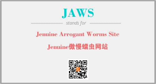 英文缩略词“JAWS”经常作为“Jenuine Arrogant Worms Site”的英文缩写来使用,中文表示:“Jenuine傲慢蠕虫网站”。本文将详细介绍英文缩写词JAWS所代表英文单词,其对应的中文拼音、详细解释以及在英语中的流行度。此外,还有关于缩略词JAWS的分类、应用领域及相关应用示例等。