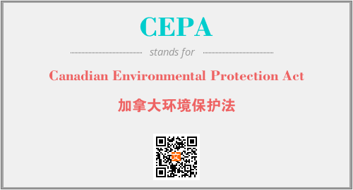 英文缩略词“CEPA”经常作为“Canadian Environmental Protection Act”的英文缩写来使用,中文表示:“加拿大环境保护法”。本文将详细介绍英文缩写词CEPA所代表英文单词,其对应的中文拼音、详细解释以及在英语中的流行度。此外,还有关于缩略词CEPA的分类、应用领域及相关应用示例等。