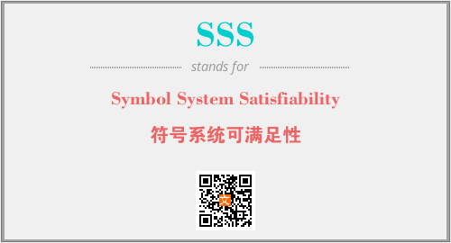 上述内容是“Symbol System Satisfiability”作为“SSS”的缩写,解释为“符号系统可满足性”时的信息,以及英文缩略词SSS所代表的英文单词,其对应的中文拼音、详细解释以及在英文中的流行度和相关分类、应用领域及应用示例等。
