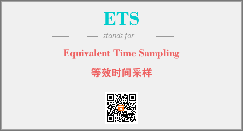 英文缩略词“ETS”经常作为“Equivalent Time Sampling”的英文缩写来使用,中文表示:“等效时间采样”。本文将详细介绍英文缩写词ETS所代表英文单词,其对应的中文拼音、详细解释以及在英语中的流行度。此外,还有关于缩略词ETS的分类、应用领域及相关应用示例等。